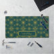 The star and geometric patterns add a touch of modernity and sophistication to the desk pad, creating a trendy and chic aesthetic that complements any workspace. The combination of the celestial elements, geometric shapes, and script name customisation makes for a truly personalised and stylish desk pad.