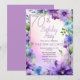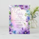 Elegant bohemian style morning glories and aster flowers floral design "70th Birthday Party" design featuring a floral frame in blue, lavender and purple, on a pastel-toned watercolor background.