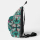 Boho Mosaic Tile Teal Ocean - this calm, clear Teal Ocean style Sling Bag / Crossbody Bag can be personalised on the top of the zipper pocket, just customise it with your name, or your favourite slogan, or delete it to have only the plain design on your product.