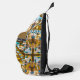 Boho Mosaic Tile yellow Honey - this sweet yellow Honey style Sling Bag / Crossbody Bag can be personalised on the top of the zipper pocket, just customise it with your name, or your favourite slogan, or delete it to have only the plain design on your product.