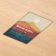 A retro style acrylic wedding invitation for your mountain or forest wedding. This design features a subtly distressed illustration of a mountain and forest landscape in yellow, orange, and navy blue ombre effect, overlaid with your wedding details in white retro font.