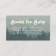 A trendy books for baby enclosure card with a dusty blue and green mountains and forest background overlaid with white retro font. All text is editable.