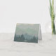 A boho folded thank card with a dusty blue and green mountains and forest background overlaid with white retro font on the front. Blank on the reverse for your message.