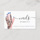 Boho nails technician henna tattoos illustration with a hand painted watercolor hand with blue nails manicure and black floral henna tattoos . all text is customizable, add your social media.