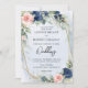 Boho navy and blush gold frame and eucalyptus wedding invitation,