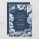 Boho Navy Blue Gold Wildflowers Botanical Wedding Invitation
