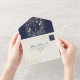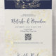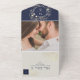 Make your wedding planning effortless with this elegant boho navy blue monogram all-in-one wedding invitation. Featuring a sophisticated navy blue monogram with delicate floral accents in gold, this invitation is both stylish and functional. The all-in-one design includes a detachable RSVP card and a stunning photo back for a personal touch. Perfect for boho, rustic, or elegant weddings.
