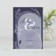 Boho navy blue photo names script arch wedding invitation