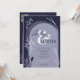 A modern rustic and boho desert, bold names wedding invitation with custom names with a hand written calligraphy and serif font, 2 names , two styles. All the text, names and background colours are customisable with 2 photos and arch shaped photo with bohemian dusty navy blue. A simple and minimalist invitation, add your qr code for rsvp, details and all in one invite with editable floral dried pampas grass.