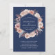 Boho Navy Blue Pink Floral Wreath Wedding Invitation