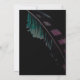 Romantic boho chic wedding invitation features colourful feathers and a black background.