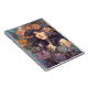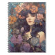 A wildflower child with art nouveau flair will add dimension to your home decor. This image would make a beautiful design for decoupage paper. It features a dreamy, artistic composition of a woman’s face surrounded by lush flowers in shades of pink, lavender, and orange. Her flowing, deep teal-blue hair blends seamlessly into the floral arrangement, creating a sense of harmony between nature and the human figure.