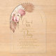 Bring the warmth of the kasbah to your event with this desert inspired invite that features a colour palette from soft sand and rose gold to deep burnt copper. Exotic dried botanicals, subtle arch shapes add to the mystique. The transparent acrylic graduation invitation shown here has all the above with the addition of a template to add your event details.