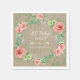 Personalised baby shower napkins for your favourite Bohemian loving mother-to-be! Sweet Baby girl on the way and looking for a Boho Chic Baby shower theme? Hand painted in watercolor by Audrey Jeanne Roberts, these boho style flowers are loose, painterly and bright colours. Mixed with pretty Baby's breath flowers and leaf foliage for an elegant rustic wreath design with typography style script handwriting and arrow divider. The background of these plates is a worn, distressed, aged barn wood fence for the perfect blend of rustic and refined - romance and woodsy comfort. Country Chic meets vintage inspired! Art by Audrey Jeanne Roberts, copyright all rights reserved.