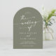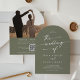 Boho Olive Green Photo QR Code Arch Wedding Invitation