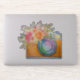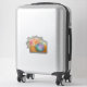 A vinyl decal with a watercolor illustration of an orange camera and a floral bouquet resting on top. The flowers in the bouquet are light pink and orange with green leaves, a pretty floral arrangement.