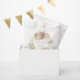 These customisable bridal shower favour bags feature a soft watercolor wreath made of dried palm leaves, pampas grass, and white orchids. The delicate circular design gives your event a refined, boho-inspired touch. Perfect for rustic, neutral, or floral-themed showers, each bag can be personalised with the bride’s name or a thank-you message. Fill them with small gifts, treats, or keepsakes to delight your guests and complete your event's aesthetic.