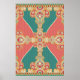 A rich decorative poster filled with corals, peaches and soft greens that enhance the vintage quality inspired by a touch of paisley pattern.