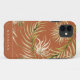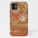 Boho chic tropical foliage pattern with brunt orange colour background, personalised with name, iphone case.