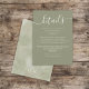 A simple minimalist wedding rsvp with a QR code website online details, with URL scannable scan online, guests more information URL response, respond via website QR code, with a botanical boho tropical destination, a watercolor palm leaves leaf design, for resort beach ocean island venue, modern simple green sage colour, a tropical greenery floral foliage, an elegant casual simple respond enclosure