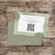 A simple minimalist wedding rsvp with QR code website online rsvp, with URL scannable scan online, guests more information URL response, respond via website QR code, with a botanical boho tropical destination, a watercolor palm leaves leaf design, for resort beach ocean island venue, modern simple green sage colour, a tropical greenery floral foliage, an elegant casual simple respond enclosure