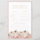 Add a fun and on-theme baby shower game to your event plans! This design features watercolor pink and ivory pumpkins with pampas grass and floral accents. This design is fully customisable AND dual-sided for more fun and versatility!