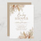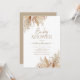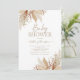 Rustic boho baby shower invitations featuring a simple white background, watercolor desert dried leaves, pampas grass, and a elegant baby shower template that is easy to customise.