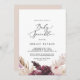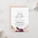 This boho pampas grass baby sprinkle invitation is perfect for a summer baby shower. The floral watercolor design features bohemian burgundy and blush pink flowers with sprigs of neutral pampas grass and golden dried palm leaves.