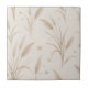 Ceramic Tile - Elegant boho pampas grass pattern in soft brown and beige tones with scattered stars on a clean white background. Minimalist earthy aesthetic with a calm, modern feel. Ideal for boho lovers, neutral style enthusiasts, and minimalist home aesthetic fans.