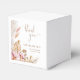 An elegant boho floral bridal shower favour box. This design incorporates pink/gold/brown pampas grass and flowers. Customise the text to create the perfect wedding shower thank you favour box.