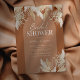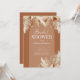 Rustic bohemian bridal shower invitations featuring a terracotta background with a arch feature, watercolor desert dried palm leaves, pampas grass, and a elegant bridal party template that is easy to personalise.