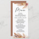 Elegant Boho themed bridal shower menu featuring floral arrangements with pampas grass. The calligraphy heading is an image that can be removed. The back of the menu is a plain terracotta color that can also be altered. This design is ideal for a modern boho themed bridal shower.