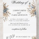 A Boho Pampas Grass Elegant and Dusty Blue floral design perfect for your summer and fall wedding themes. You can change the wording, text size, color and font on this template. You can add background or edit the color