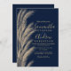 Boho pampas grass gold glitter navy blue wedding invitation
