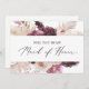 This boho pampas grass maid of honour proposal card is perfect for a summer wedding. The floral watercolor design features bohemian burgundy and blush pink flowers with sprigs of neutral pampas grass and golden dried palm leaves. Customise the card with the name of the bride and the maid of honour. Personalise the back of the card with a personalised message.