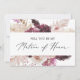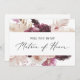 This boho pampas grass matron of honour proposal card is perfect for a summer wedding. The floral watercolor design features bohemian burgundy and blush pink flowers with sprigs of neutral pampas grass and golden dried palm leaves. Customise the card with the name of the bride and the matron of honour. Personalise the back of the card with a personalised message.