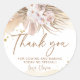 Boho Pampas Grass Thank You Classic Round Sticker. Can be used on any occasion like birthdays, baby showers, bridal showers, weddings, and more.