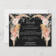 Wedding details card. Boho Pampas Grass Foliage Kraft Wedding Details, Reception & Hotel Details Invitation Enclosure Card. Deep black background sets off the fairy twinkle lights and modern stylish warm earth tone coloured watercolor flowers and foliage. Boho trend gathered foliage arrangement of pampas grass, dried palms and blush and white flowers. All artwork was created in watercolor by internationally licensed artist and product designer, Audrey Jeanne Roberts, copyright.