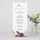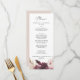 This boho pampas grass wedding dinner menu card is perfect for a summer wedding. The floral watercolor design features bohemian burgundy and blush pink flowers with sprigs of neutral pampas grass and golden dried palm leaves. This menu can be used for a wedding reception, rehearsal dinner, or any event.