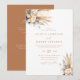 Elegant burnt orange font watercolor boho bouquet, pampas grass and dried florals wedding invitation with QR code and more detailed information on the back.