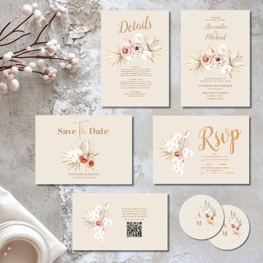 Embrace bohemian charm and natural beauty with our Boho Pampas Grass Floral Wedding Invitation. Perfect for couples seeking a rustic yet elegant aesthetic, this invitation features a delicate arrangement of pampas grass and floral accents, evoking a sense of romance and whimsy.