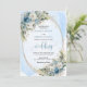 Set the tone for an unforgettable celebration with this elegant watercolor wedding invitation, beautifully designed with dusty blue florals, soft white peonies, and delicate eucalyptus
