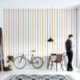 Boho pastel colour retro striped wallpaper featuring vertical stripes.