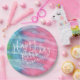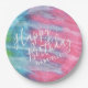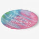 Boho Pastel Tie Dye Happy Birthday with Name Paper Plate