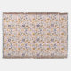 This image is a seamless pattern featuring a vibrant boho floral design. The pattern is composed of various stylised flowers in shades of blue, yellow, and orange, interspersed with leaves and small dots. The background is a simple white, allowing the colourful flowers to stand out. The overall aesthetic is cheerful and playful. The intricate details of the floral elements create a sense of depth and texture, adding visual interest. The use of contrasting colours adds vibrancy and makes the pattern visually appealing.
