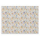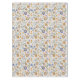This image is a seamless pattern featuring a vibrant boho floral design. The pattern is composed of various stylised flowers in shades of blue, yellow, and orange, interspersed with leaves and small dots. The background is a simple white, allowing the colourful flowers to stand out. The overall aesthetic is cheerful and playful. The intricate details of the floral elements create a sense of depth and texture, adding visual interest. The use of contrasting colours adds vibrancy and makes the pattern visually appealing.
