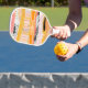 Unleash your inner paddle ball champion and dominate the court with this stunning pickleball paddle. Boho Peach Gold Personalised Pickleball Paddle.