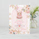 Boho Pink Beary First Winter Birthday Floral Invitation