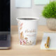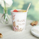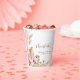 These paper cups feature a minimalist boho floral theme. The design features a floral pampas grass theme and incorporates soft pinks, brown and gold tones throughout the design. All text can be customised.