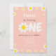 Boho Pink Cute Daisy Flowers 1st Birthday Invitation
